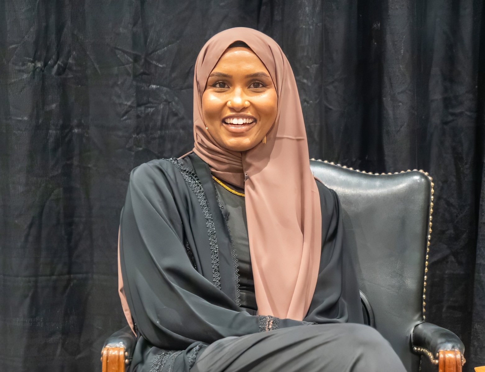 Jamad Fiin ‘21 G ‘22 returned to campus to her remarkable journey from being one of the few Muslim women playing basketball wearing a hijab on the court to emerging as a social media sensation to becoming a philanthropist rubbing elbows with sports figures like Boston Celtics superstar Jaylen Brown.