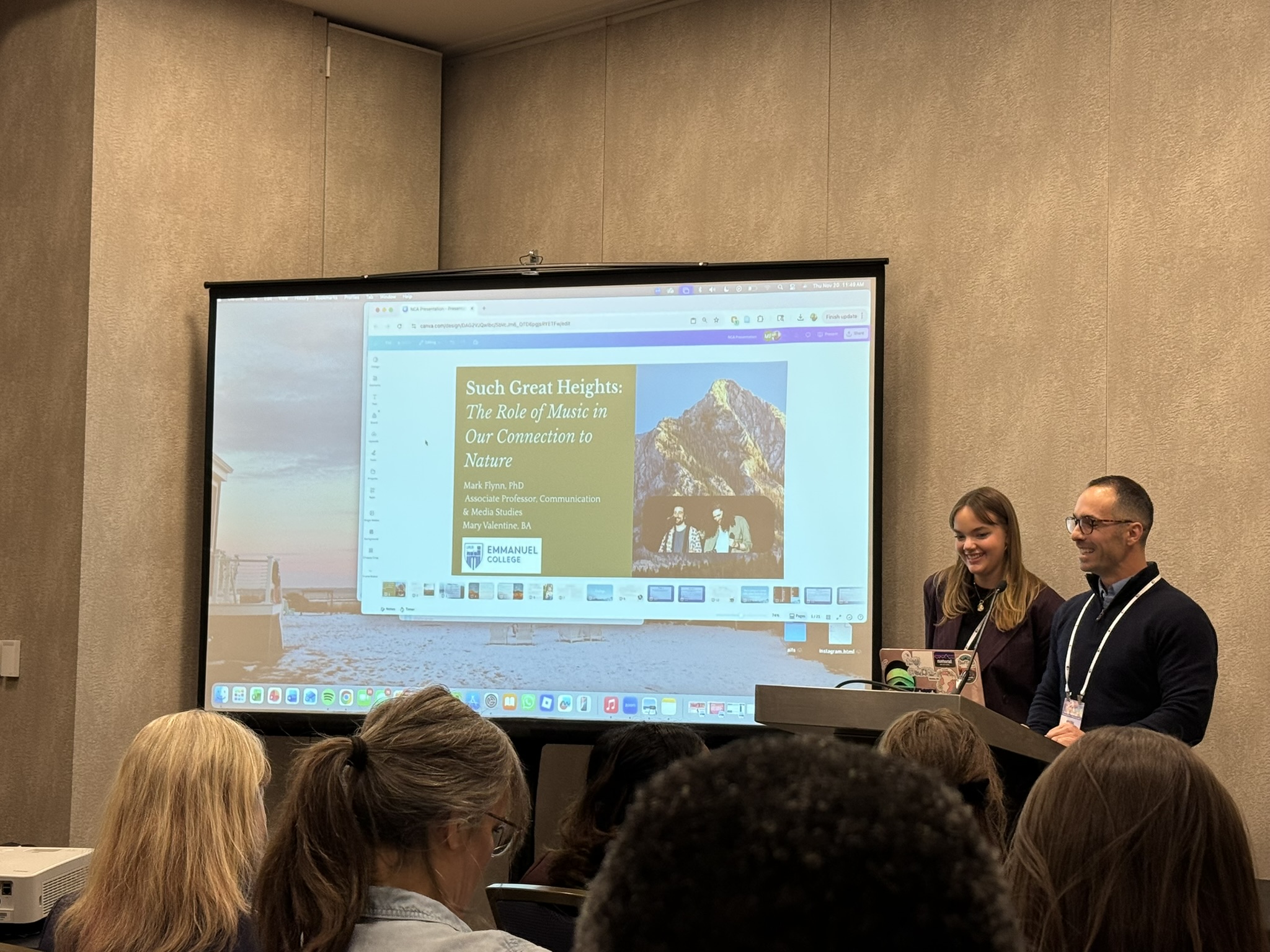 The presentation stemmed from some of Dr. Flynn’s prior research that explores the intersection of nature and technology – and looking deeper into the idea that connecting with nature requires a disconnect from technology.