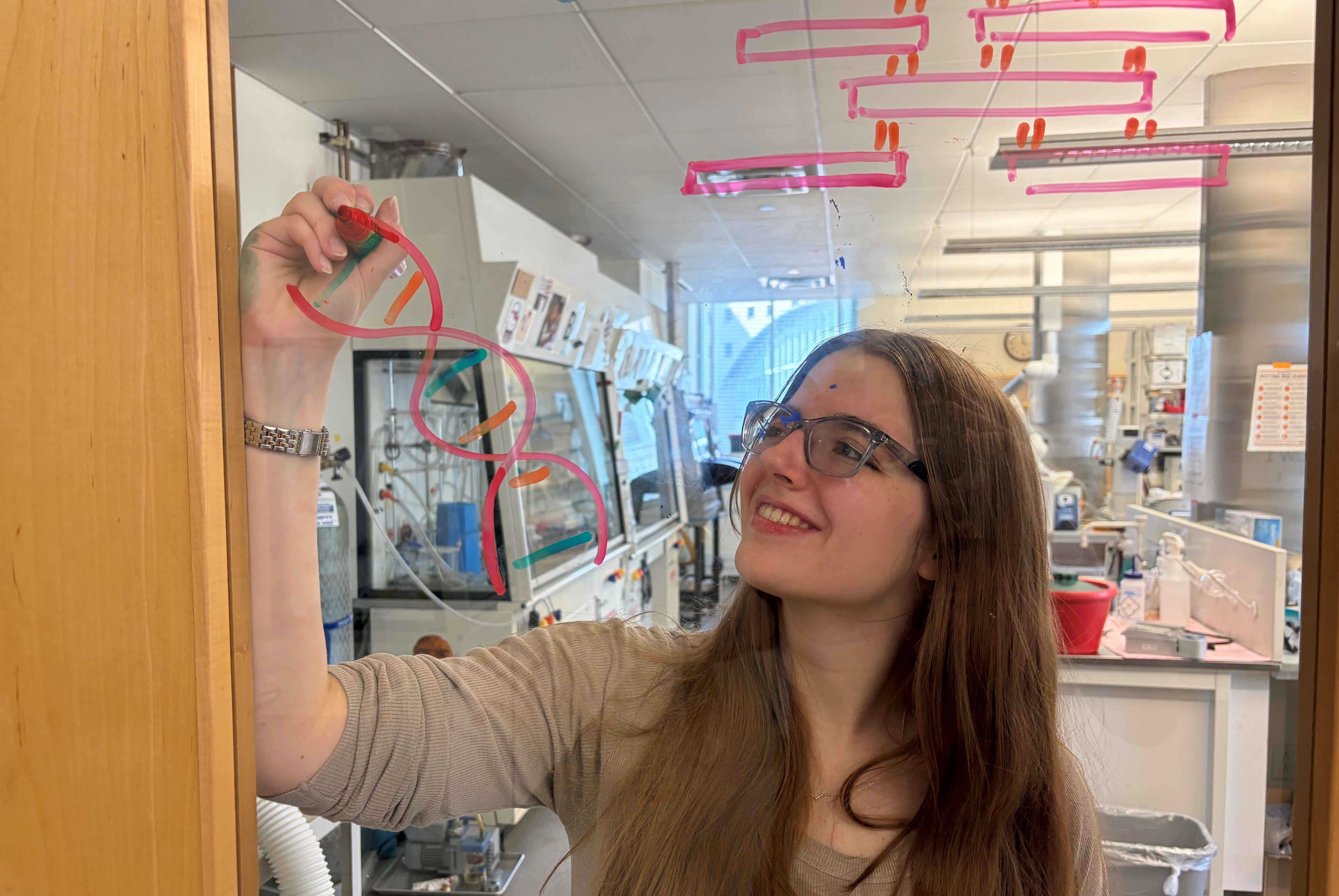 Research was central to the application, and Kazis had much to draw on from her time at Emmanuel. She’s been collaborating with Professor of Chemistry Dr. Aren Gerdon for almost two years; it’s a journey that included two summers of immersive lab work through the Emmanuel Summer Research program. She’s also co-authored the findings for publication, which are currently in review.