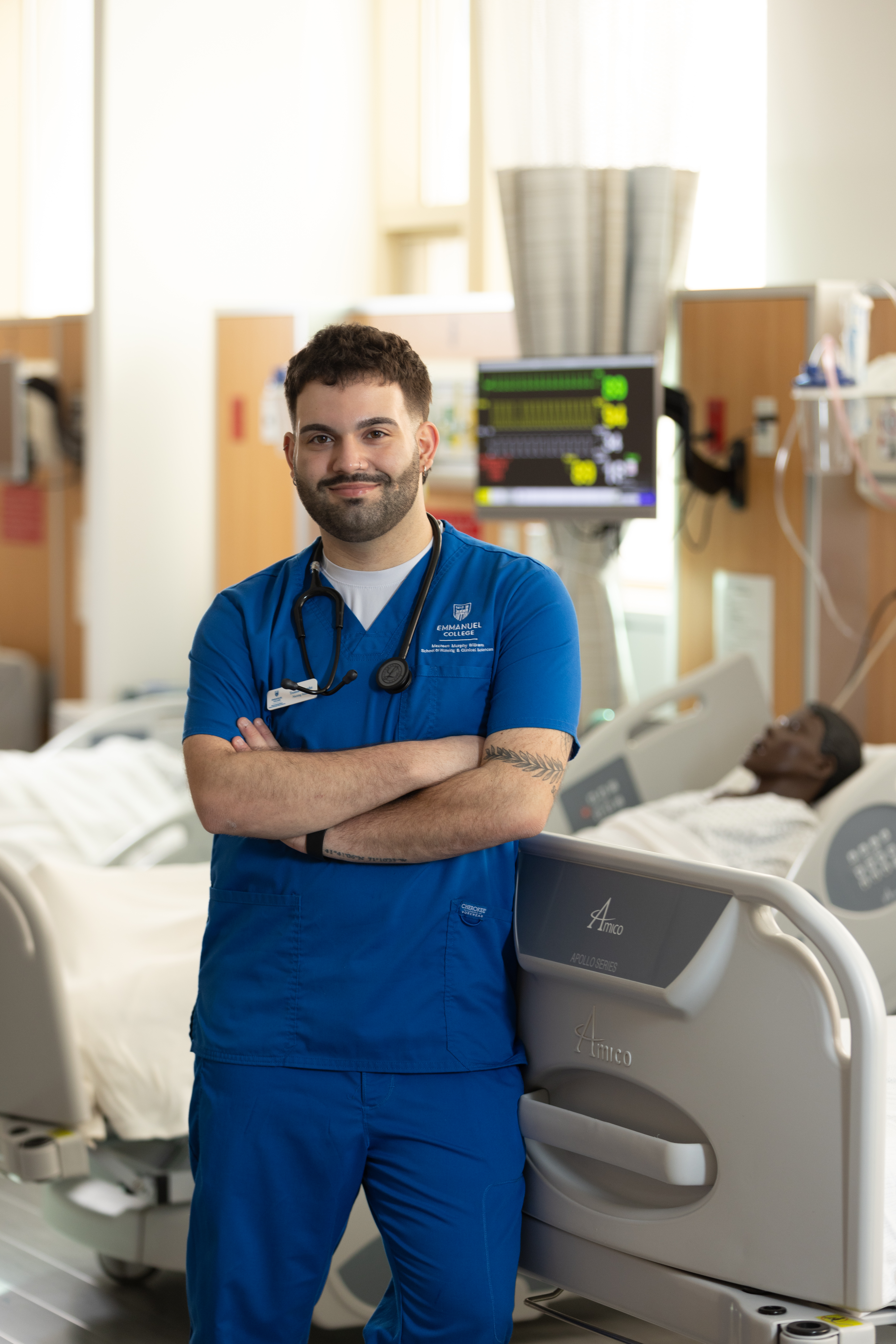 Coming from a vocational high school, Trent entered Emmanuel’s nursing program with hands-on experience and a clear commitment to the field. Joining the College’s third nursing cohort, he was drawn to the excitement of shaping a growing program. “The faculty really value our feedback,” he shares. “They listen to us and make sure we’re getting what we need to succeed. It helps shape the program for future students.”
